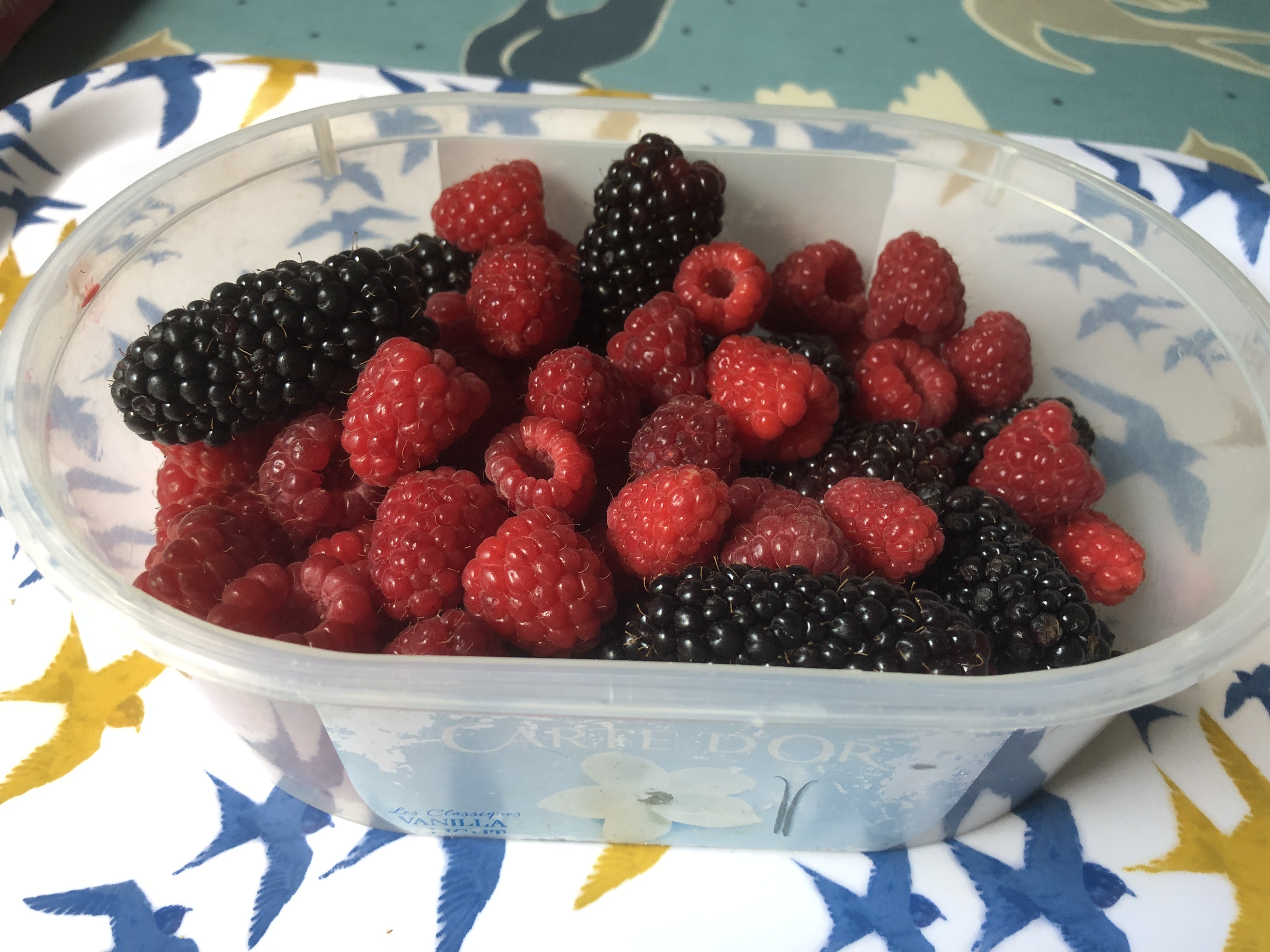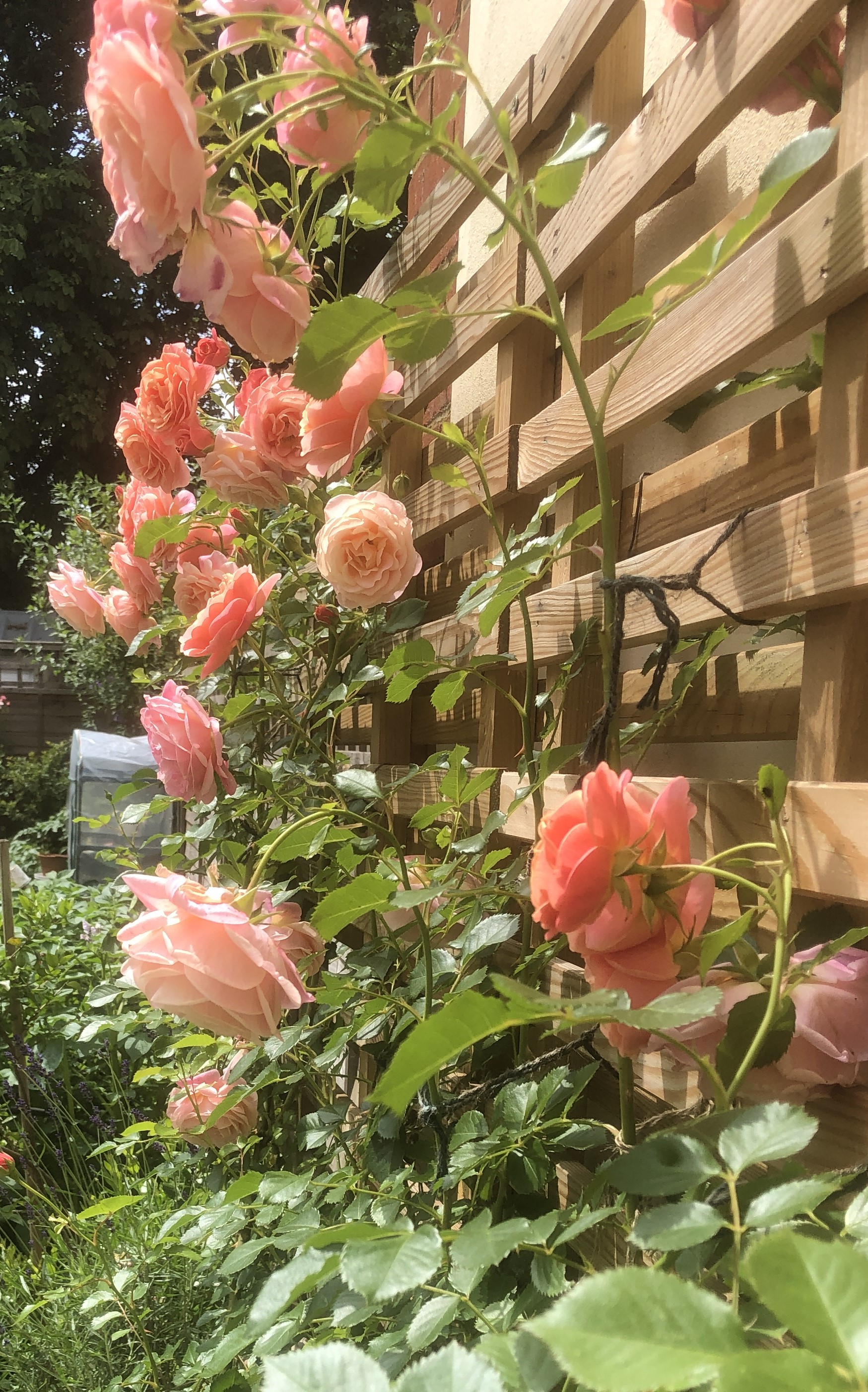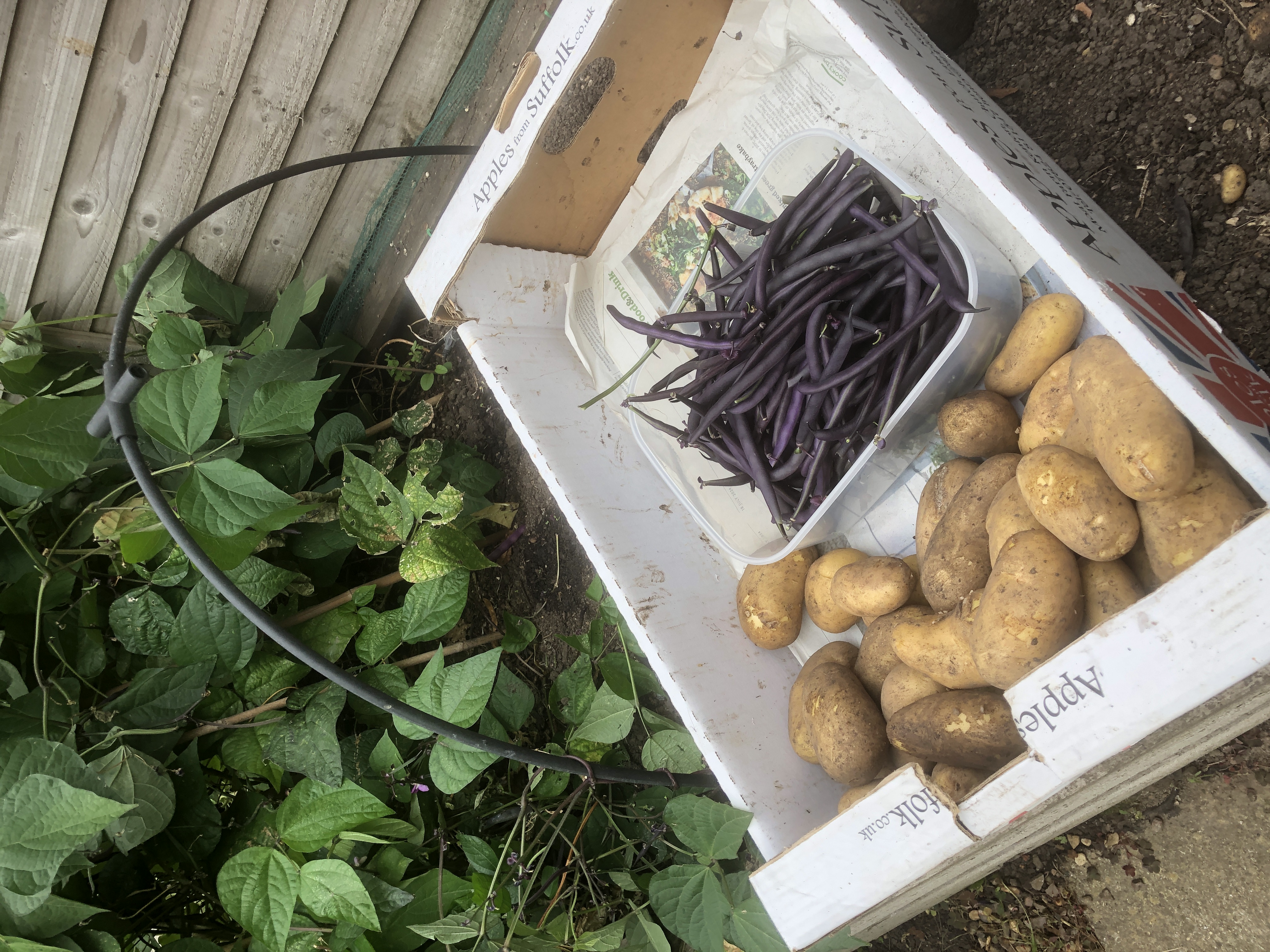We re-landscaped the back garden during lockdown (see the Project page) to give us an enlarged patio, our Crunchy Corner that catches the sun in the morning, and a raised bed along one side for Bev to grow some fruit & veg, although we’re a long way from being self-sufficient!